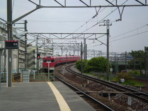 きょう 5月 なのかは 3時からの グランパスの しあいを みに いっただけど、途中 神宮前 (じんぐうまえ)で とった 写真を 紹介する。 まずは 河和 (こうわ) いき 急行。 110507‐03 神宮前で 13:03 発 河和 いき 急行の うしろ すがた 神宮前は 名古屋本…