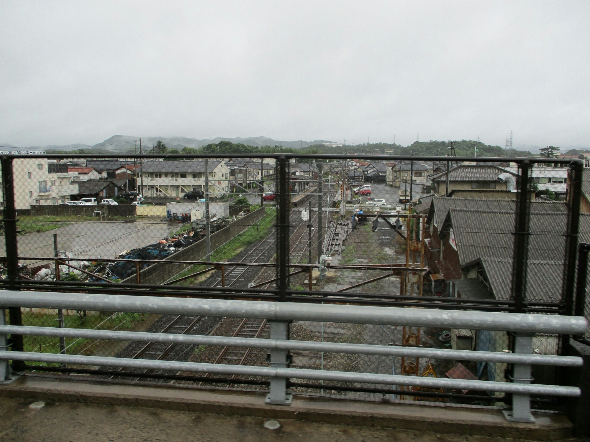 バスは出雲市の市街地にはいる。いや、ぞんがいに活気のあるまちだ。道路ぞいに、郊外がたのみせやら事業所やらがいっぱいある。山陰の小都市ってまっとひなびたまちかっておもっとった。みちをひだりにおれてみなみにすすんだとこで、高架の線路にあたる。てまえに一畑線北松江線の高架と、ほのむこうに山陰線の高架。いやいや、鉄道まで高架になっとるとは、またまたおどろきだ。